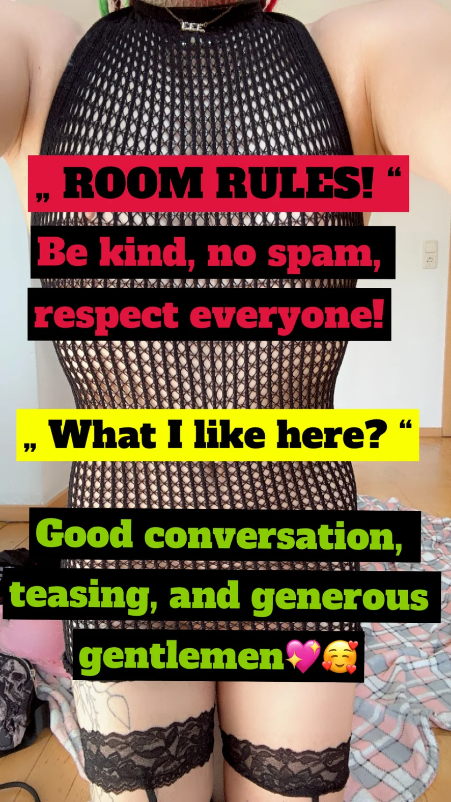 English 🇬🇧 🔥 Requests = Tips only 🔥 1. 🤝 Be respectful to me and everyone in the room. 2. 💰 All requests must go through the tip menu. 3. 🚫 No spam and no begging for free shows. 4. ❌ No insults or drama in chat. 5. 🌍 English 🇬🇧 or German 🇩🇪 only. 6. 🛡️ i keep the room clean – my word is final!! 7. 😈 Good vibes stay, bad vibes get kicked. Deutsch 🇩🇪 🔥 Wünsche nur über Tipps / Trinkgeld-Menü 🔥 1. 🤝 Sei respektvoll zu mir und zu allen im Chat. 2. 💰 Wünsche werden nur über das Trinkgeld-Menü erfüllt. 3. 🚫 Kein Spam und kein Betteln nach kostenlosen Shows. 4. ❌ Keine Beleidigungen, kein Drama im Chat. 5. 🌍 Nur Deutsch 🇩🇪 oder Englisch 🇬🇧 im Chat. 6. 🛡️ ich sorgen für Ordnung bis ich vertrauenswürdige Mods finde – MEIN Wort zählt! 7. 😈 Gute Vibes bleiben, schlechte fliegen raus.